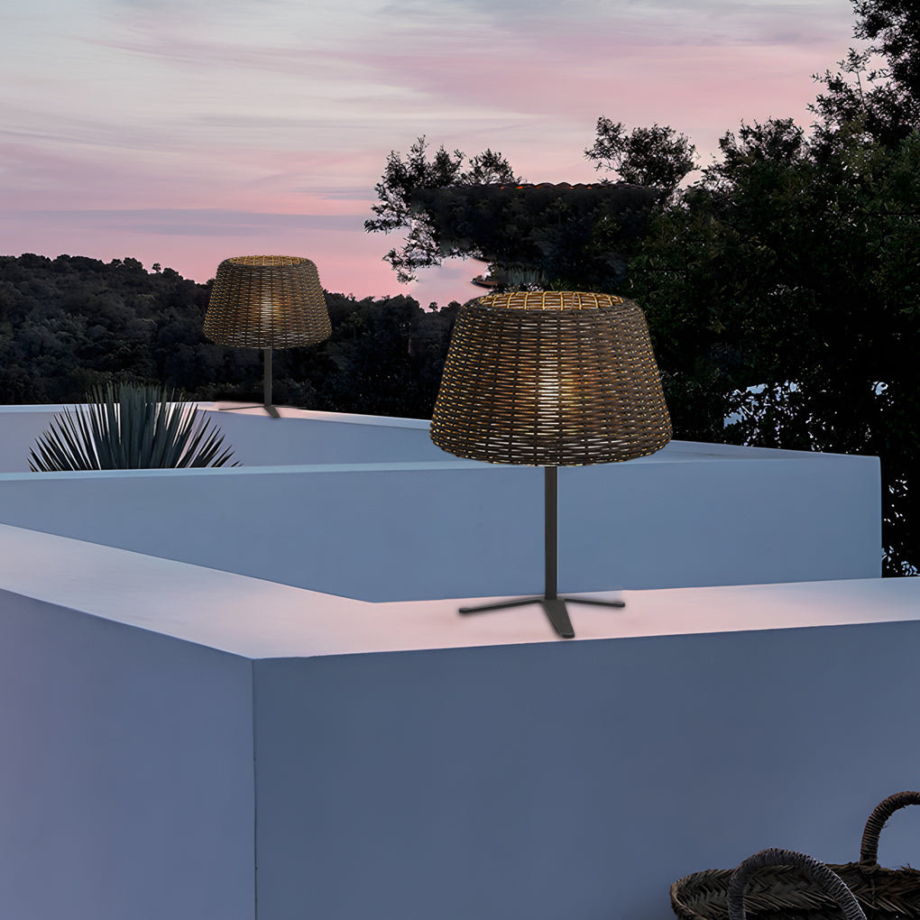 - Our Outdoor 13.77 inch wicker table lamp is crafted from stainless steel and featuring a hand-woven rattan lampshade.